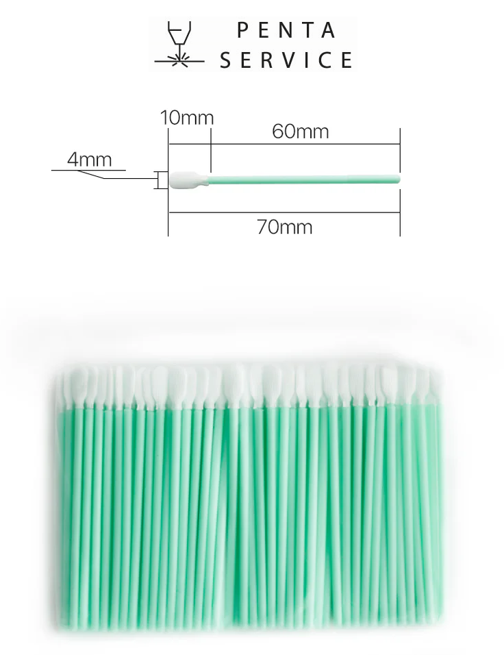 Для очистки оптики важно использовать безворсовые чистящие палочки (свабы). Палочки применяют для точечного удаления инородных частиц с поверхности оптической детали. Они не оставляют микроскопических частиц ворса, которые могут пригореть к линзе так же, как и пыль, поэтому их использование исключает риск повреждения деталей. Они имеют нежную текстуру, идеально подходящую для очистки поверхностей оптических элементов. Палочки удобно использовать в сочетании с изопропиловым спиртом, который удаляет с поверхностей отпечатки пальцев, жировой налет и другие загрязнения.